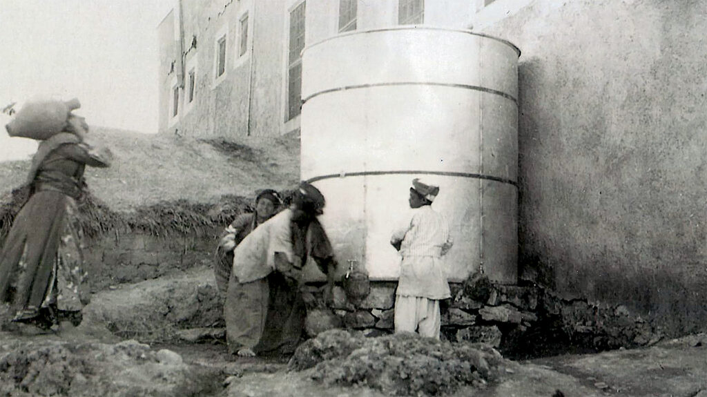 A tank with the fresh water that Roger piped uphill to supply a quarter of the town